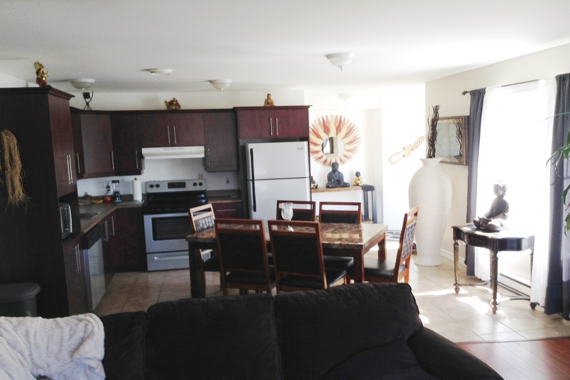 Cap de la Madeleine. (En raison du covid 19, nous vous invitons a visionné la vidéo du logement.) Très grand 5 ½ 1300pi2, 1eétage, style condo entré indépendante, avec Garage privé (12¨x 22¨) ou remise (11¨x 5¨), et stationnement intérieur ou extérieur inclus, nouveaux secteur T-R-Est, près des services. À proximité : (poste de police, quincaillerie, salon de coiffure, Tim-Horton, dépanneur, restaurant.) Beaucoup de rangement. Trois grandes chambres à coucher, (14 x 12) — (13 x 11.5) — (11.5 x 11). Grande salle de bain de luxe avec bain thérapeutique et douche sauna hydro massage (radio.) Double lavabo, Salle de lavage. Espace de rangement Intérieur 10 x 6. Salle à manger et salon à aires ouvertes, (27 x 14). Grande fenestration, échangeur d’air, couvre plancher, flottant et céramique, Le logement offre la fibre optique, porte patio et Balcon avant. N,C/N,É. Budget énergie 120.00$ jour. Insonorisation supérieur planché béton, (Construction récente). Disponibilité juillet. Déneigement compris. Service conciergerie. Accès au parc Arthur Vaillancourt, jeu pour enfant, sentier pédestre, vtt, vélo, ski de fond, près autoroute 40, 5 min. centre-ville. Veuillez noter qu'afin de maximiser la quiétude et le respect de nos locataires, les immeubles sont non-fumeur non cannabis, et n’acceptons pas les chiens dans nos logements. Consulté notre site pour visite virtuel du logement style condo, http://www.trouve-ton-appart.com/ ou YouTube : logis-zone Trois-Rivières.